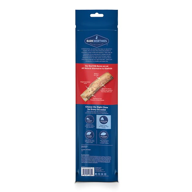 Keep your energetic chewer occupied with the Barkworthies Beef Rib Bone Dog Treat. This is an oven-baked beef rib bone for medium- to large-sized dogs, complete with tasty bits of real meat and tendon still attached! Each drool-worthy chew is highly digestible, containing a rich amount of calcium, iron and zinc to benefit your pup’s health in more than one way—calcium helps maintain your pup’s bone and tooth strength while iron and zinc help boost his immune system to fight off infection. This all-natural treat provides a tasty beef flavor and cleaner teeth as he is tempted to chew the day away.