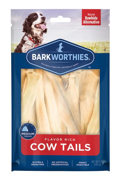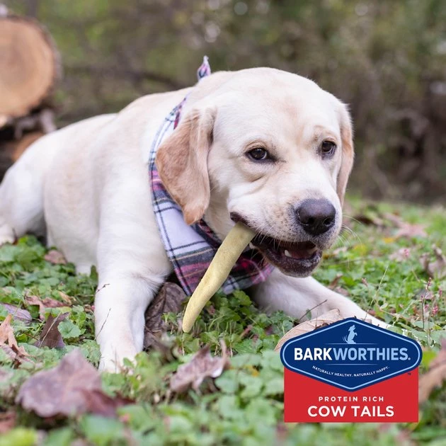 Barkworthies Cow Tails are full sized, un-cut and baked to perfection creating the ultimate long lasting dog chew for dogs of all sizes. They also serve as a great dental chews by removing food residue and plaque. Barkworthies Cow Tails are a dense, durable dog chews that will give your pet hours of chew time. Barkworthies Cow Tails have been a longtime favorite for dogs everywhere! Barkworthies Cow Tails are all-natural, 100% digestible dog chews making them a healthy alternative to traditional rawhide chews! Barkworthies Cow Tails are FDA approved and sourced from Brazil, one of the highest quality sources in the world. As with all of Barkworthies products, their Cow Tails are additive free, chemical-free and preservative free. In fact, most Barkworthies products are single-ingredient chews, making them all natural, healthy and safe for your dog.