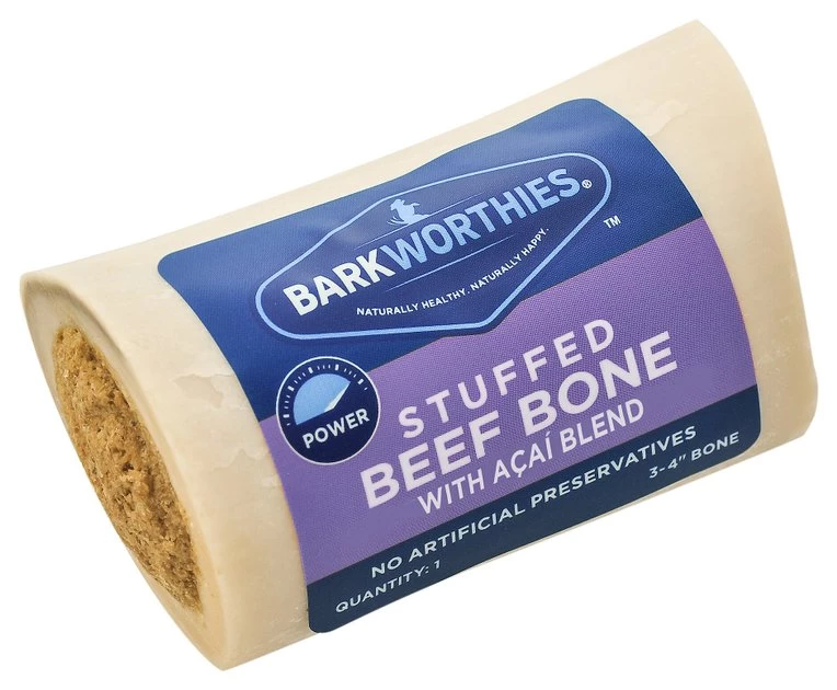 Keep your active chewer busy with the Barkworthies Shin Bone Stuffed with Acai Blend Dog Treat. These treats are the perfect all-natural way to reward your little one while also treating them to cleaner teeth and gums! These holistic treats are grain-free, making them the perfect snack for dogs who are allergic to grain or chicken. Use them to keep even the most aggressive chewers busy for hours. Plus, these tasty treats feature an abrasive texture that not only makes them highly durable but also works to clean your pet’s teeth and gums.