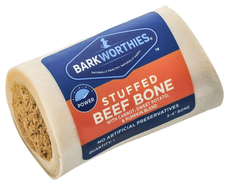 Keep your active chewer busy with the Barkworthies Shin Bone Stuffed with Pumpkin, Sweet Potato, & Carrot Blend Dog Treat. These treats are the perfect all-natural way to reward your little one while also treating them to cleaner teeth and gums! These holistic treats are grain-free, making them the perfect snack for dogs who are allergic to grain or chicken. Use them to keep even the most aggressive chewers busy for hours. Plus, these tasty treats feature an abrasive texture that not only makes them highly durable but also works to clean your pet’s teeth and gums.