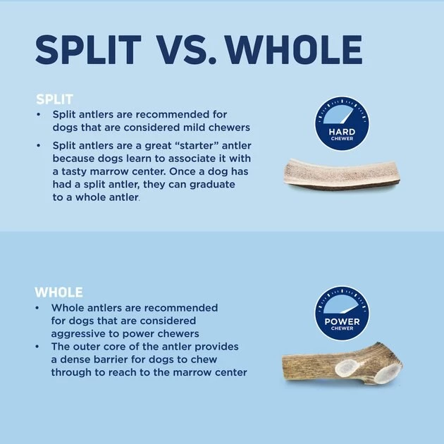 The Barkworthies Split Elk Antler Dog Chew is paw-fect for the fur-ever friend who has a hankering for a long-lasting, all-natural, odor-free and low-mess chew. Collected ethically after roaming elk shed their antlers each year, the antlers are thoroughly cleaned then cut to a size that’s paw-fect for your furbaby. With an exposed marrow center, your pup will associate his good chewing habits with a tasty, marrow-flavored reward. Free of artificial preservatives, additives, flavors, colors and chemical treatments, the Split Elk Antler Dog Chew is a highly digestible and drool-worthy source of protein.
