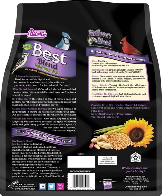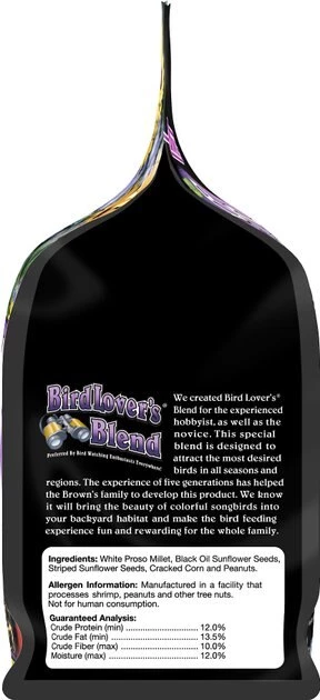 Just like its name implies, Brown’s Bird Lover’s Blend Best Blend Wild Bird Food has all the ingredients that songbirds love in a blend that’s best for all seasons, climates and regions. They’ll be full of energy from their favorite foods with 28% black oil and striped sunflower seeds, natural white proso millet, gourmet cracked corn and shelled peanuts as an added delicacy. These make excellent sources of complex carbohydrates to help songbirds manage harsh environments and conditions. You’re sure to attract a wide selection of colorful birds with all the natural ingredients they prefer.