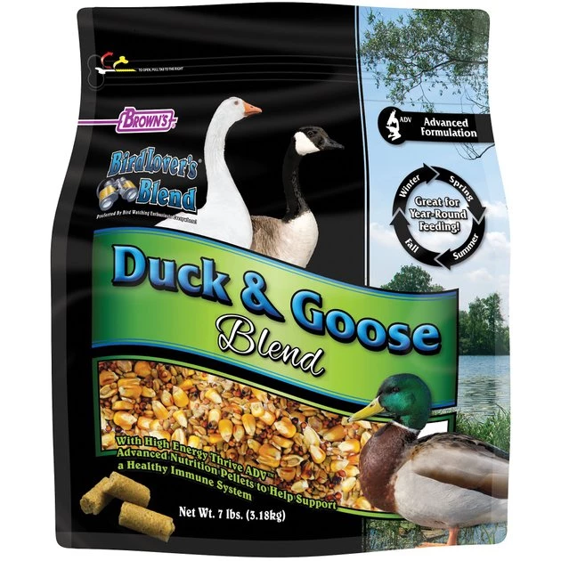 Encourage a local gaggle to drop by for a visit with Bird Lover’s Blend bird food from Brown’s. Especially designed to attract and satisfy waterfowl, this blend features kernels of corn, milo and wheat for the nutrients wild birds need. And, with Brown’s distinctive Thrive ADV pellets, this nutrition-boosting blend can help provide your local ducks and geese with the energy they need to flourish in their natural habitat. These pellets are fortified with vitamins and minerals, plus probiotics for healthy digestion. Put it all together and you have an exceptional mixture designed to help waterfowl maintain healthy skin and feathers, thicker eggshells, strong bones and resilient immune systems. Together with Brown’s, you can create a rewarding experience for your family and your flying neighbors.