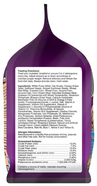 - A premium, vitamin-fortified food that is formulated to provide the proper nutrition your Cockatiel requires