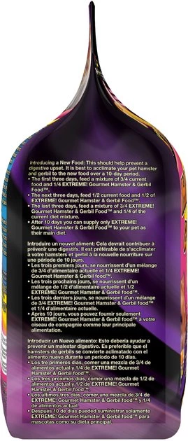 Turn your hamster pal into a wiggly gourmet when you feed him Brown’s Extreme! Gourmet Hamster & Gerbil Food. This exclusive blend is both a daily diet and a tasty treat at the same time. Enriched with vitamins and minerals this delicious medley combines yummy bites of alfalfa, pineapple, papaya, sunflower seeds and other tasty treats your little guy will go wild for. The exciting variety of colors, shapes and textures make mealtime fun by stimulating his natural foraging instincts. Infused with a fresh banana scent, this irresistible daily diet is also fortified with beneficial bacteria to support healthy digestion.