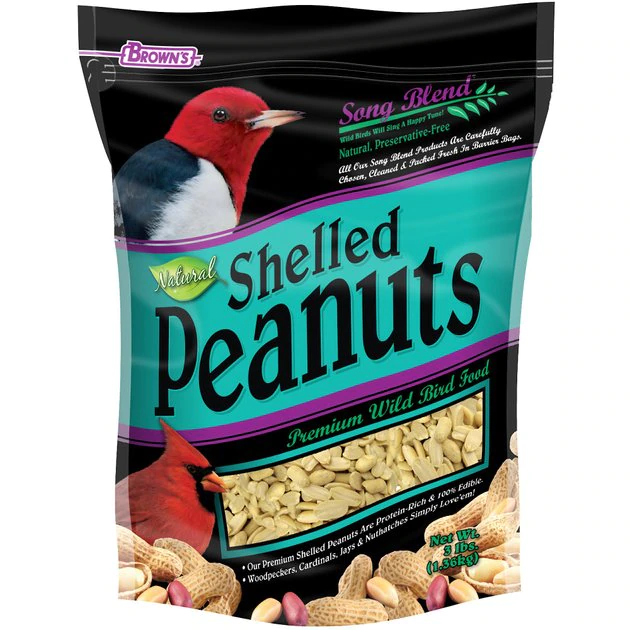 Welcome the local wildlife to your backyard with Brown’s Song Blend Shelled Peanuts! This bag of bird food contains three pounds of natural shelled peanuts made in the USA with Brown’s Five Stage Cleaning process. This process helps make the nutritionally sound and preservative-free food extra clean by removing unwanted dirt and dust. Peanuts are high in calories and pack healthy rich oils and fats to promote healthy growth and provide birds with the energy they need. Brown’s Song Blend is crafted to attract a variety of birds including cardinals, nuthatches, jays, titmice and woodpeckers. This natural blend comes in a resealable barrier bag to help preserve freshness for all your feathered friends.