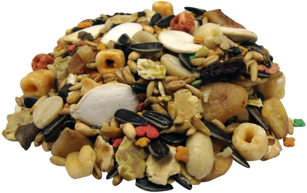 - Free of filler seeds and hay; only the natural seeds, grains, nuts, fruits and veggies