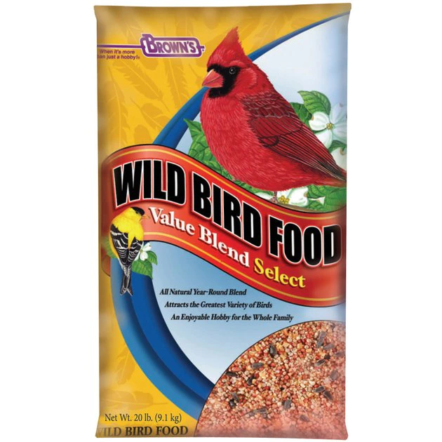 Encourage the local flock to drop by for a visit with Value Blend Select wild bird food from Brown’s. The colorful kernels in this mixture were specially chosen to attract a wide variety of birds—all year round. Not only will this blend help invite a feathered chorus to your lawn, but it can inspire a new hobby for the whole family to enjoy! Most importantly, Brown’s exclusive five-stage cleaning process helps to remove unwanted junk from natural grains and seeds so you can trust the wholesome goodness inside this bag. With Brown’s, you can create a rewarding experience for your family and your flying neighbors.