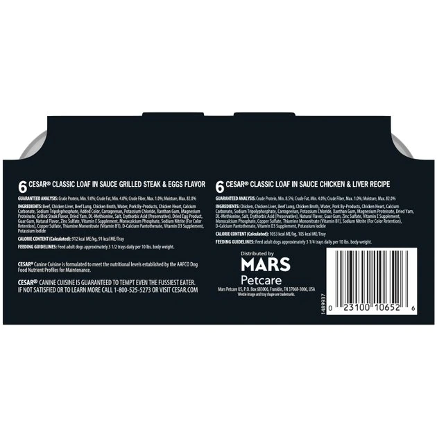 Give your pups a day and night treat with Classic Loaf in sauce Breakfast and Dinner Mealtime Variety Pack Wet Dog Food, which features US Beef or US Chicken as the #1 ingredient. Perfect for large or small dogs, the gourmet taste and smell will delight even the pickiest of pals. Classic Loaf in sauce Breakfast and Dinner Mealtime Variety Pack Wet Dog Food Trays treat your pooch with a delicious classic loaf in sauce texture. These formulas are enhanced with vitamins and minerals, which means every single-serve tray is part of a balanced and complete diet. They’re perfect to serve your pal as a meal on their own or as a delicious dry food topper. Plus, the convenient trays have easy peel-away freshness seals to make mealtime a snap.