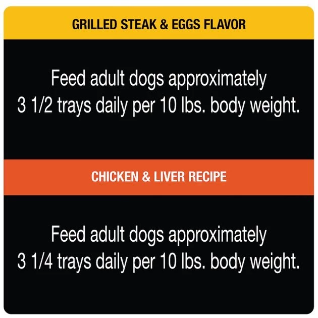 Feed adult dogs approximately 3 1/4 trays daily per 10 lbs. body weight.”