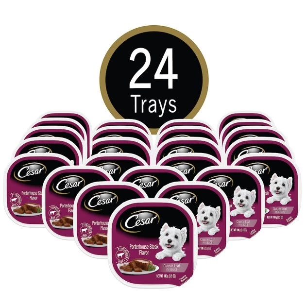 Porterhouse Steak Flavor Classic Loaf in sauce features beef as the #1 ingredient and is free of grains. Perfect for small to large dogs, the gourmet taste and smell will delight even the pickiest of pals. These formulas are enhanced with vitamins and minerals, which means every single-serve tray is part of a balanced and complete diet. They’re perfect to serve your pal as a meal on their own or as a delicious dry food topper. Plus, the convenient trays have easy peel-away freshness seals to make mealtime a snap.