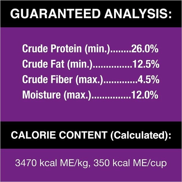 Original: 3,422 kcal/ kg, 348 kcal/cup