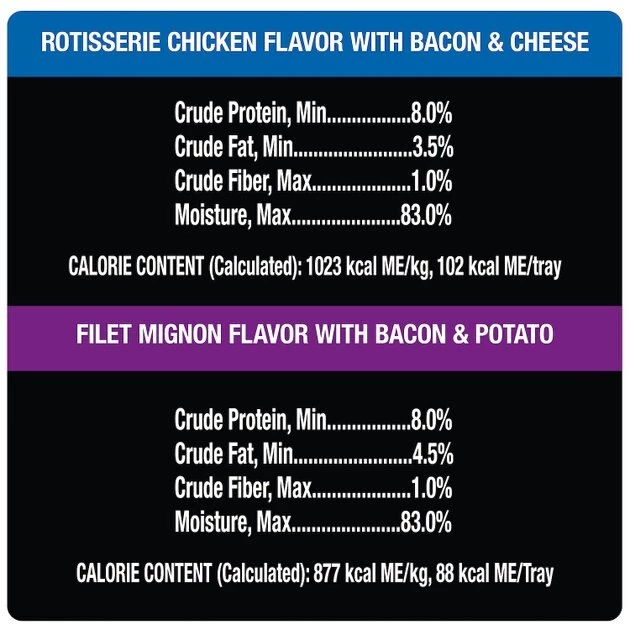 Filet Mignon Flavor with Bacon & Potato: 877 kcal/kg, 88 kcal/tray