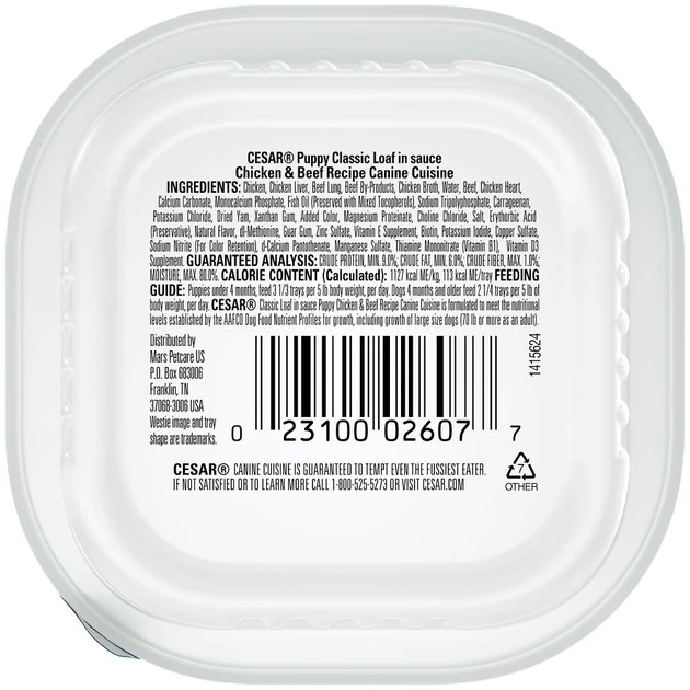 Specially prepared for growing dogs, Puppy Chicken & Beef Recipe Classic Loaf in sauce will delight even the pickiest of pals. These formulas are enhanced with vitamins and minerals, which means every single-serve tray is part of a balanced and complete diet for your pup. They’re perfect to serve your new pawtner as a meal on their own or as a delicious dry food topper. Plus, the convenient trays have easy peel-away freshness seals to make mealtime a snap.