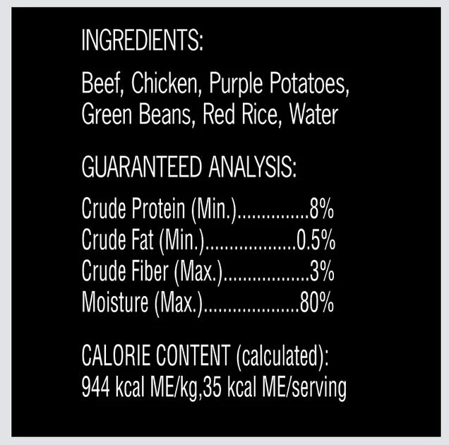 Beef, Chicken, Purple Potatoes, Green Beans, Red Rice, Water