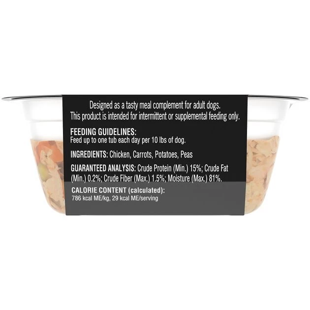 Cesar Simply Crafted is designed as a tasty meal complement for adult dogs. It should be fed in addition to a complete and balanced dog food. Feed up to one tub each day for every 10 pounds of dog’s body weight.