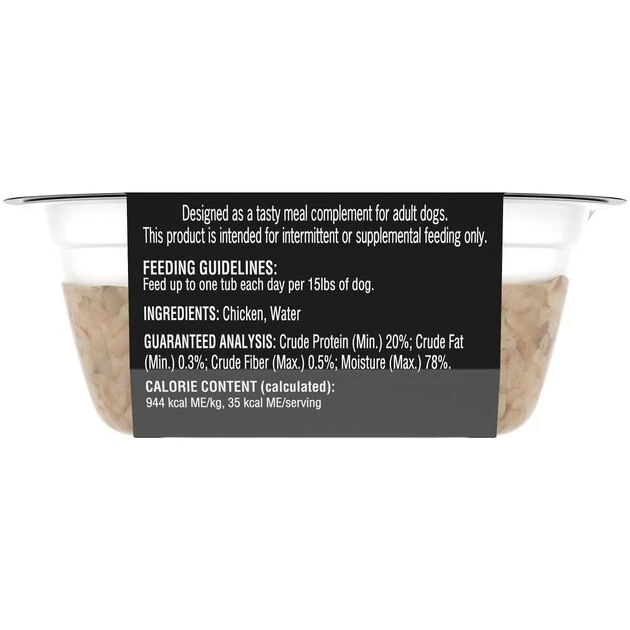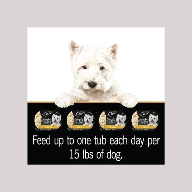 Cesar Simply Crafted is designed as a tasty meal complement for adult dogs. It should be fed in addition to a complete and balanced dog food. Feed up to one tub each day for every 15 pounds of dog’s body weight.