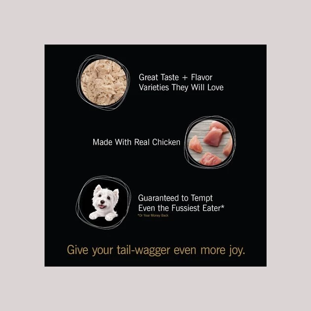 Cesar Simply Crafted Chicken Recipe Meal Topper is the perfect way to finish off your furry friend’s food. You won’t find any artificial colors, flavors, preservatives, or fillers in this tasty topper. It has a simple recipe and limited ingredients, so you can feel good about giving it to your best bud. The super yummy mix-in also features chicken as the first ingredient for an irresistible level of meatiness. Don’t make your pal settle for plain old entrees—give them a blast of meaty goodness with a Cesar Simply Crafted Topper!